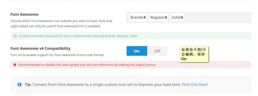 Avada 7.4 速度优化建议和注意点by avadaJune 10, 2021June 10, 2021 ✅6 Font Awesome 图标优化。如果是很早之前建的站又不想修改,那么 Font Awesome v4 Compatibility 设置为 On。 若想修改,参考 https://fontawesome.com/v5.15/how-to-use/on-the-web/setup/upgrading-from-version-4 Pages: 1 2 3 4 5 6 7