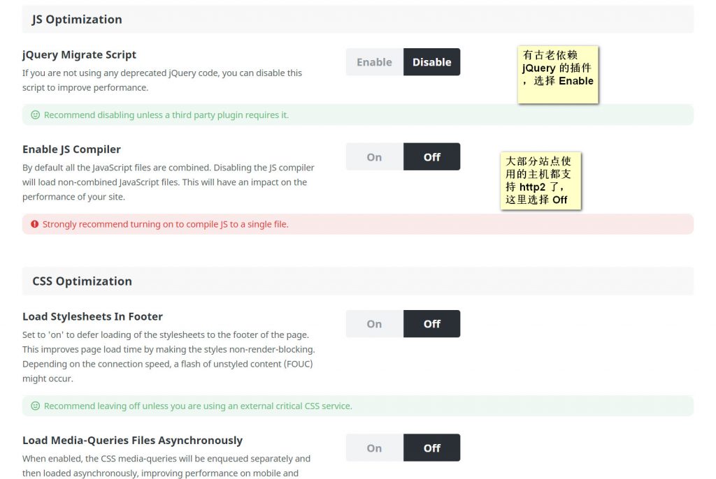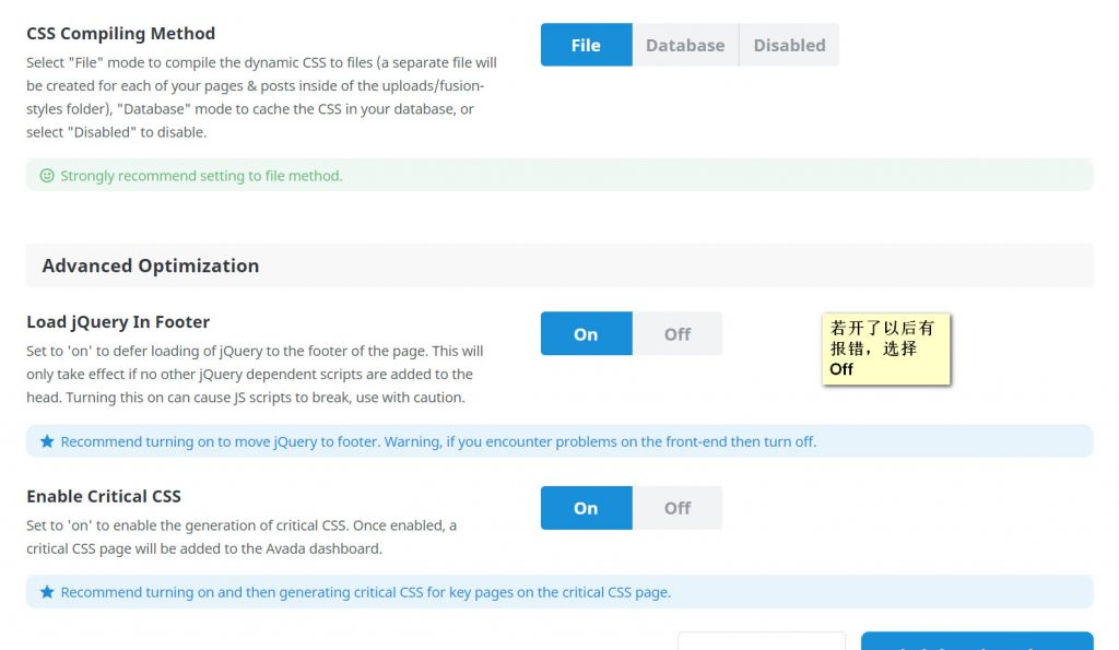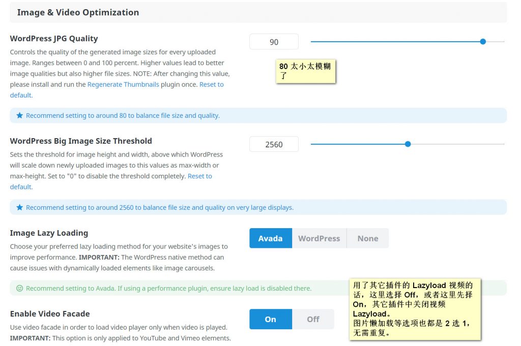 Avada 7.4 速度优化建议和注意点by avadaJune 10, 2021June 10, 2021 ✅9 图片和视频优化及懒加载。 ✅10 JS 和 CSS 优化。jQuery Migrate Script 如果选择 Disable 后没发现 JS 报错或者功能不正常就可以 Disable。Enable JS Compiler 目前一般建议选择 Off,实际 Avada 之前也是建议 Off 的。 ✅11 jQuery 和 Critical CSS,用于解决 render-blocking 渲染阻塞问题。 Pages: 1 2 3 4 5 6 7
