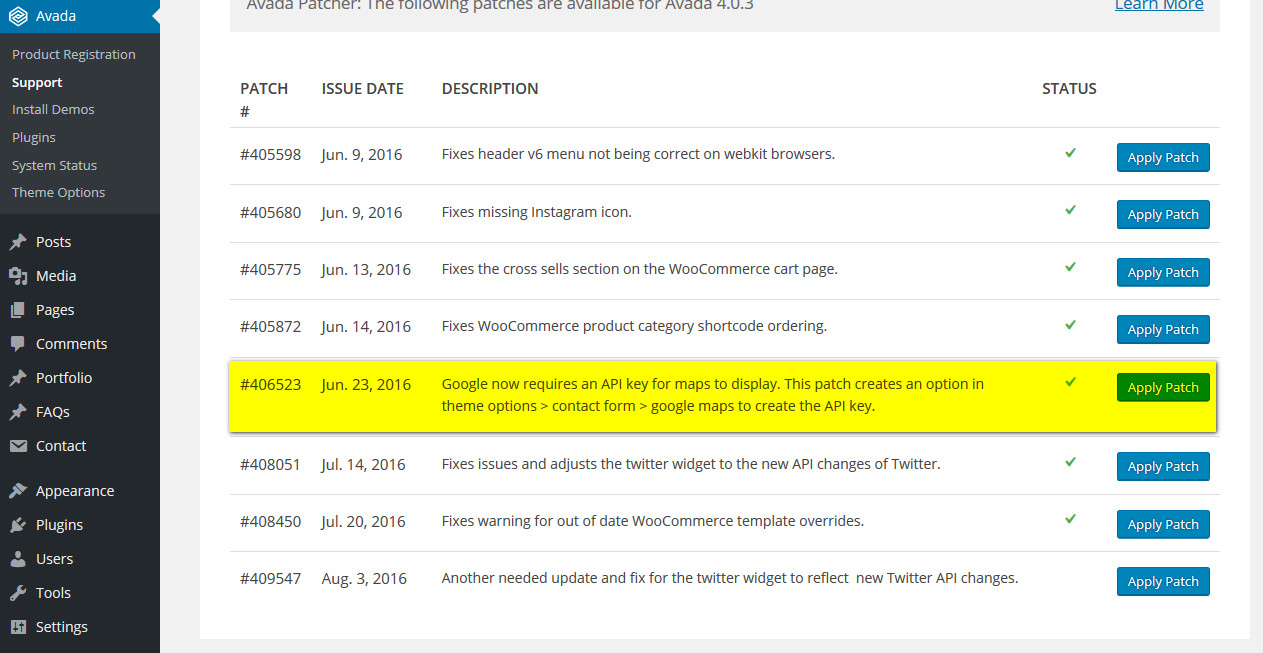 对于 Avada 用户,你需要先升级主题到最新版,然后到 support 中打上补丁,才可以填入 API key