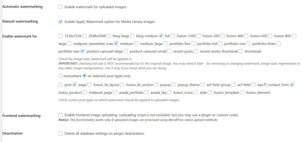 - 选择需要添加水印的 post type
