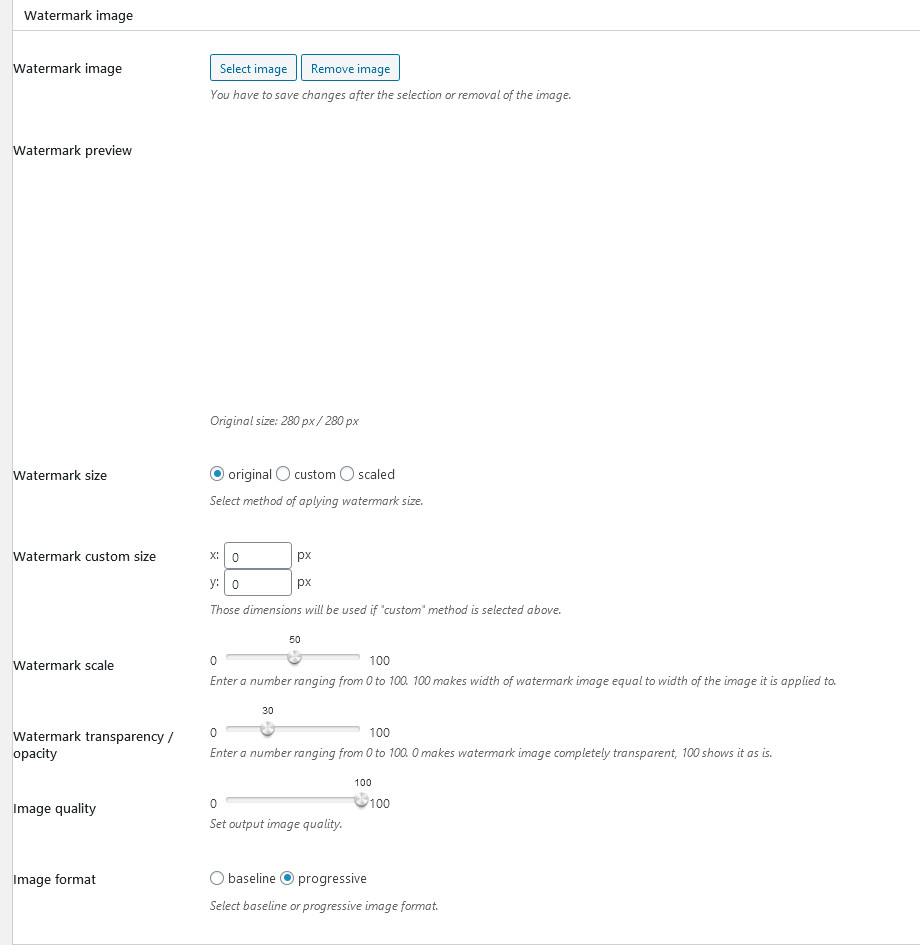 Watermark size 和 custom size 都是控制图片大小的